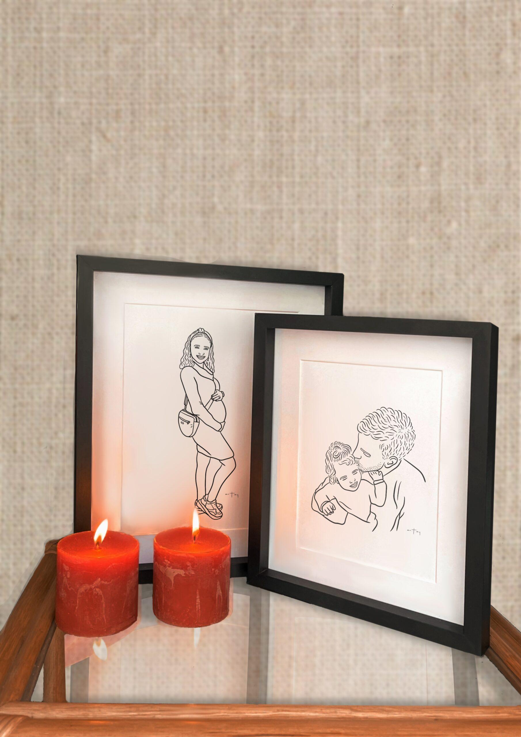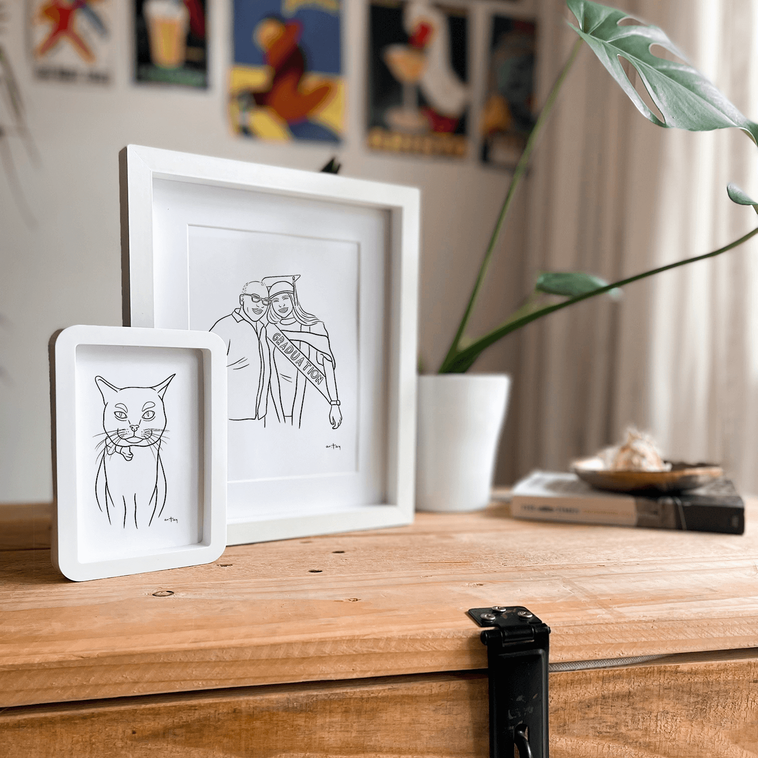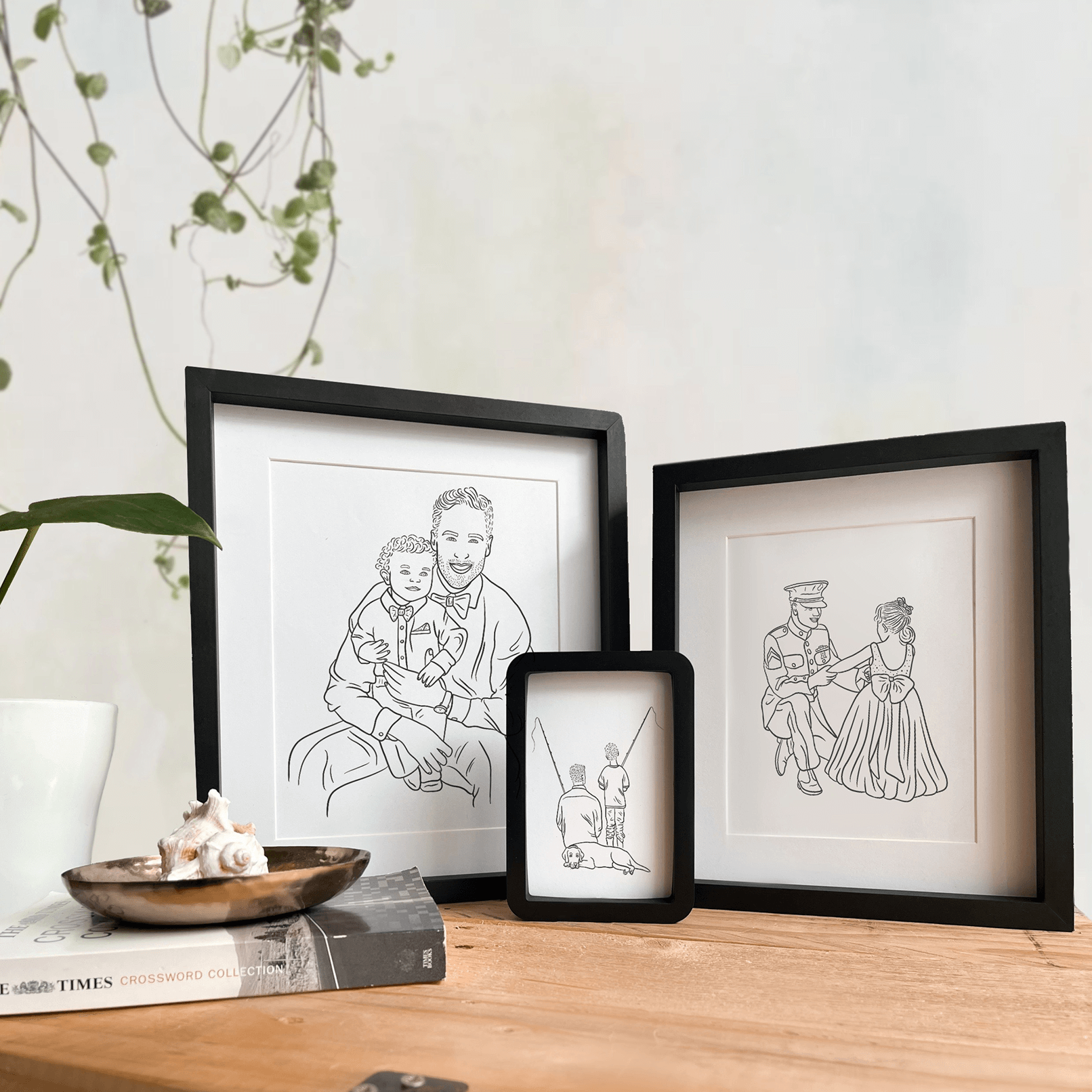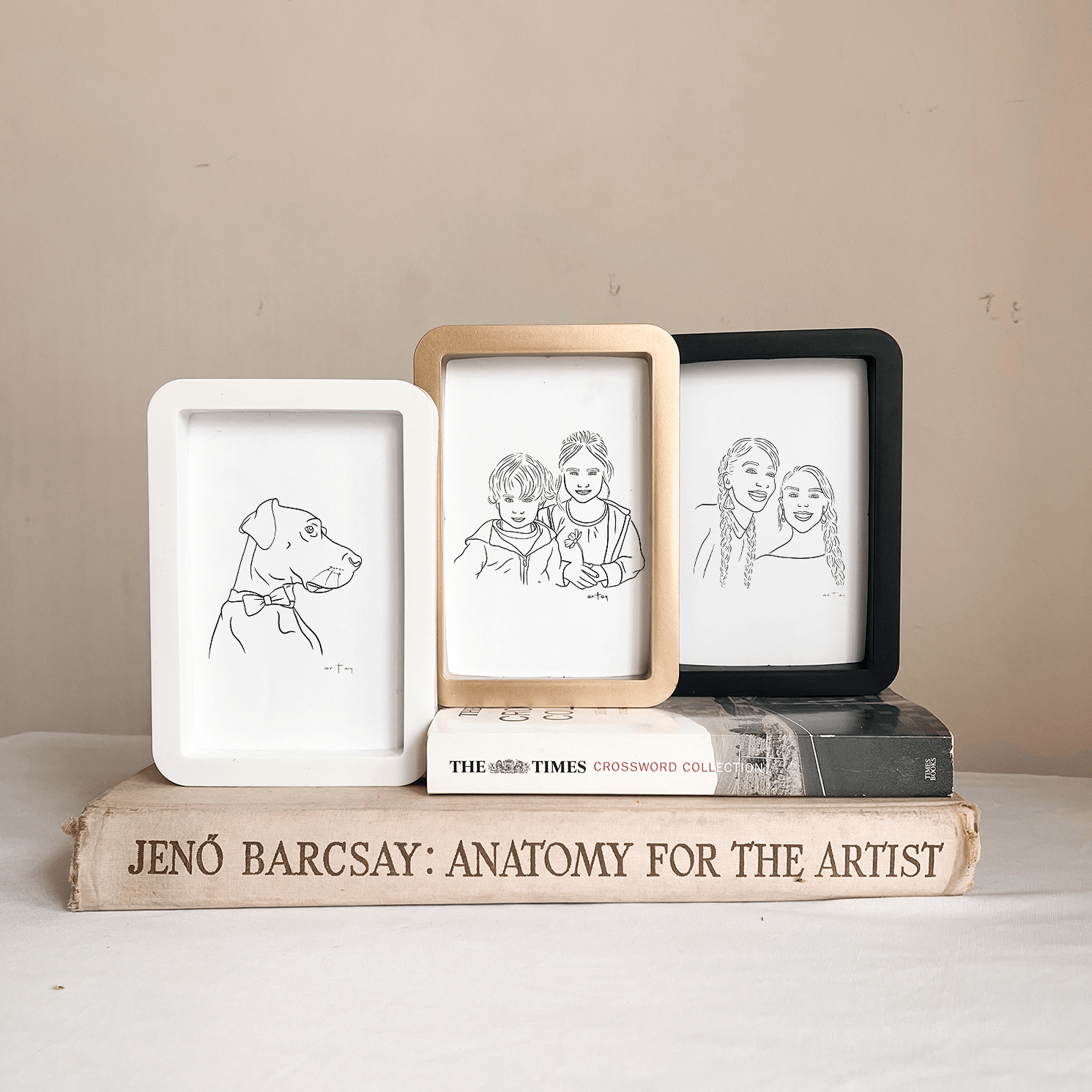 View the library of some of our favourite combinations of digital portrait drawings and framed hardcopies. Find something that piques your interest and purchase your very own custom portrait artwork.
